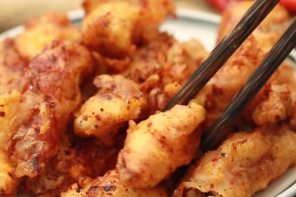 Mực chiên giòn nên được ăn lúc nóng và chấm với tương ớt